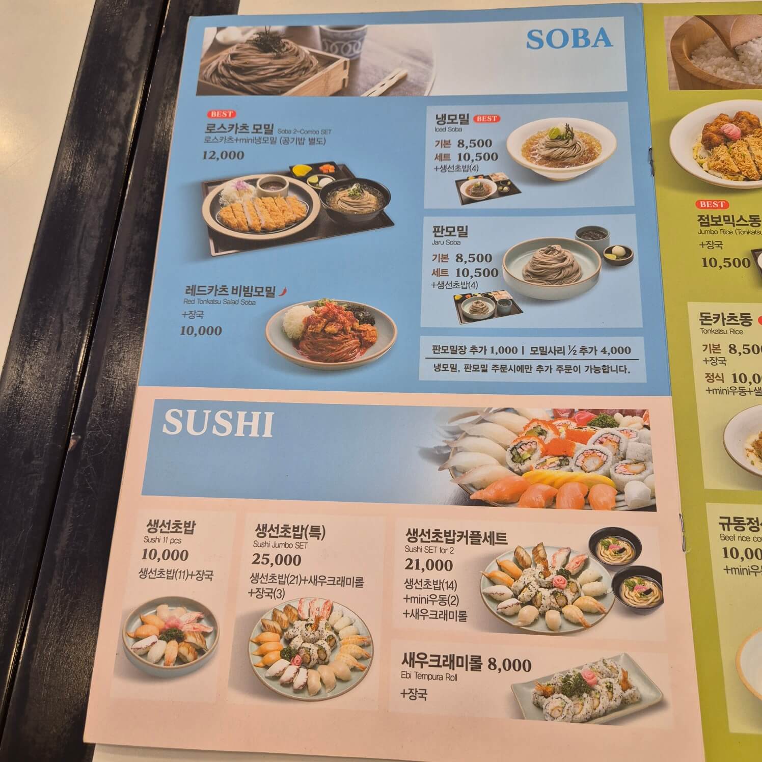 메뉴판입니다. 한장한장 다 찍어서 모든 미소야의 메뉴를 담았습니다. 여름 best와 일반 best 2개 모두 알려주는게 인상적이네요. 감기가 다 나으면 여름 베스트 메뉴인 미소야의 카츠모빌 알밥정식을 꼭 한번 먹어보고 싶습니다.